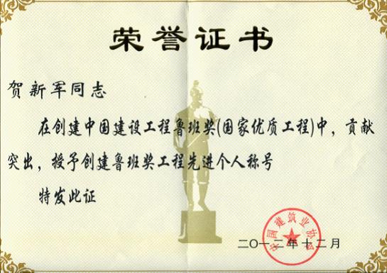 會(huì)上表彰了在創(chuàng)魯班獎(jiǎng)工程中做出突出貢獻(xiàn)的單位和個(gè)人,公司質(zhì)安經(jīng)理賀新軍同志被中國建筑業(yè)協(xié)會(huì)授予“創(chuàng)建魯班獎(jiǎng)工程先進(jìn)個(gè)人”榮譽(yù)稱號(hào)。這是中國建設(shè)工程魯班獎(jiǎng)自1987年設(shè)立以來,首次對(duì)創(chuàng)魯班獎(jiǎng)工程中做出突出貢獻(xiàn)的單位和個(gè)人進(jìn)行表彰。旨在紀(jì)念魯班獎(jiǎng)創(chuàng)立25周年,弘揚(yáng)精益求精、追求卓越的行業(yè)精神。